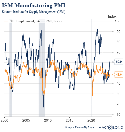 Furthermore, the biggest surprise was the ISM Prices Paid, which soared to 60, exhibiting signs that pricing pressures have soared, likely due to the pass-through of higher commodity prices.