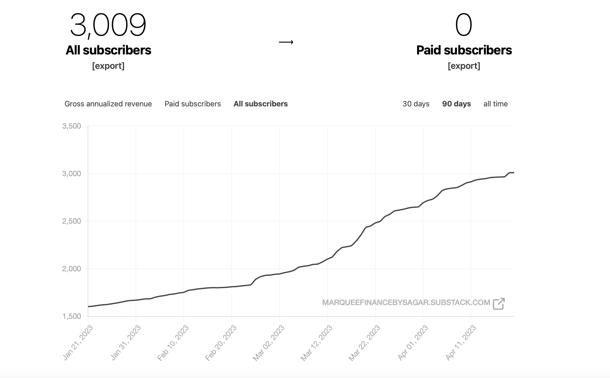 Before I begin, a big thanks to all the friends who have been part of this remarkable journey. I am glad to announce that we have doubled the subscriber count in the last 90 days, and now “Marquee Finance By Sagar” is a community of more than 3000 lovely friends spread across more than 100 countries worldwide.
