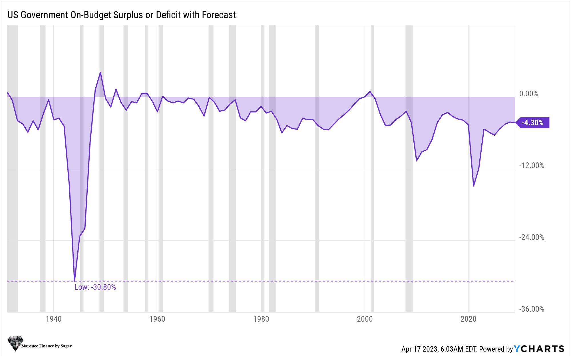 This transpired in the 40s but remember that the government ran a fiscal surplus (taxes were as high as 92% for the wealthy back then- check the first image of the last section).