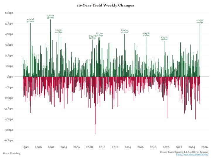 The 10Y saw a monstrous move of 51 bps, the largest since 2001.