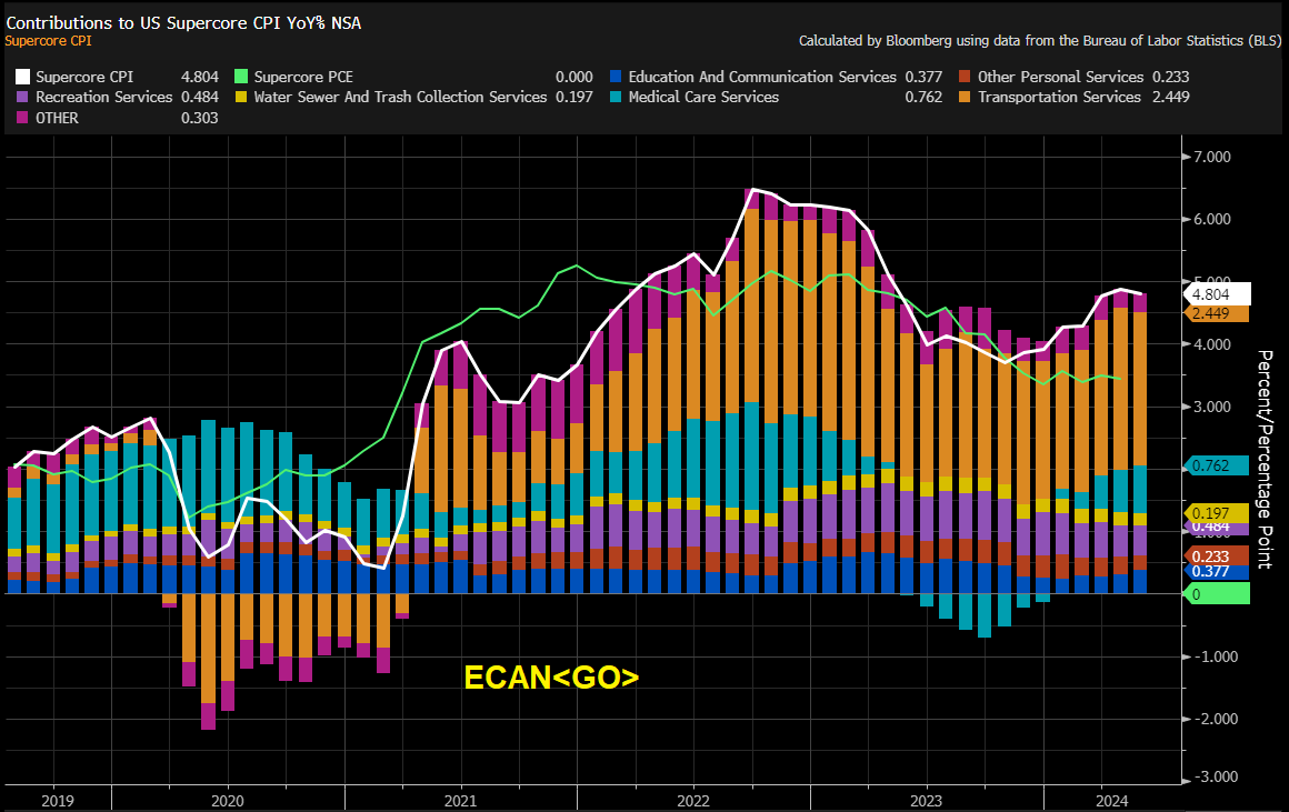 However, the real surprise was the metric that JayPo popularized post covid. Supercore or Services Ex-Housing, though still elevated at 4.8% YoY, came in at the lowest level/ negative MoM print since September 2021.