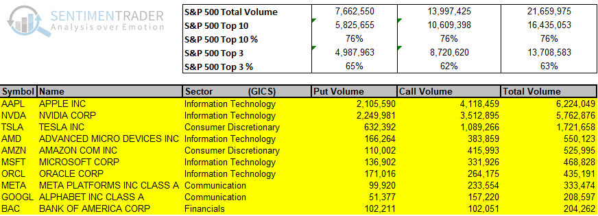 Example: On Wednesday, Apple, Nvidia, and Tesla accounted for 63% of the S&P 500's total option volume. Yes, you read it right. Let that sink in!