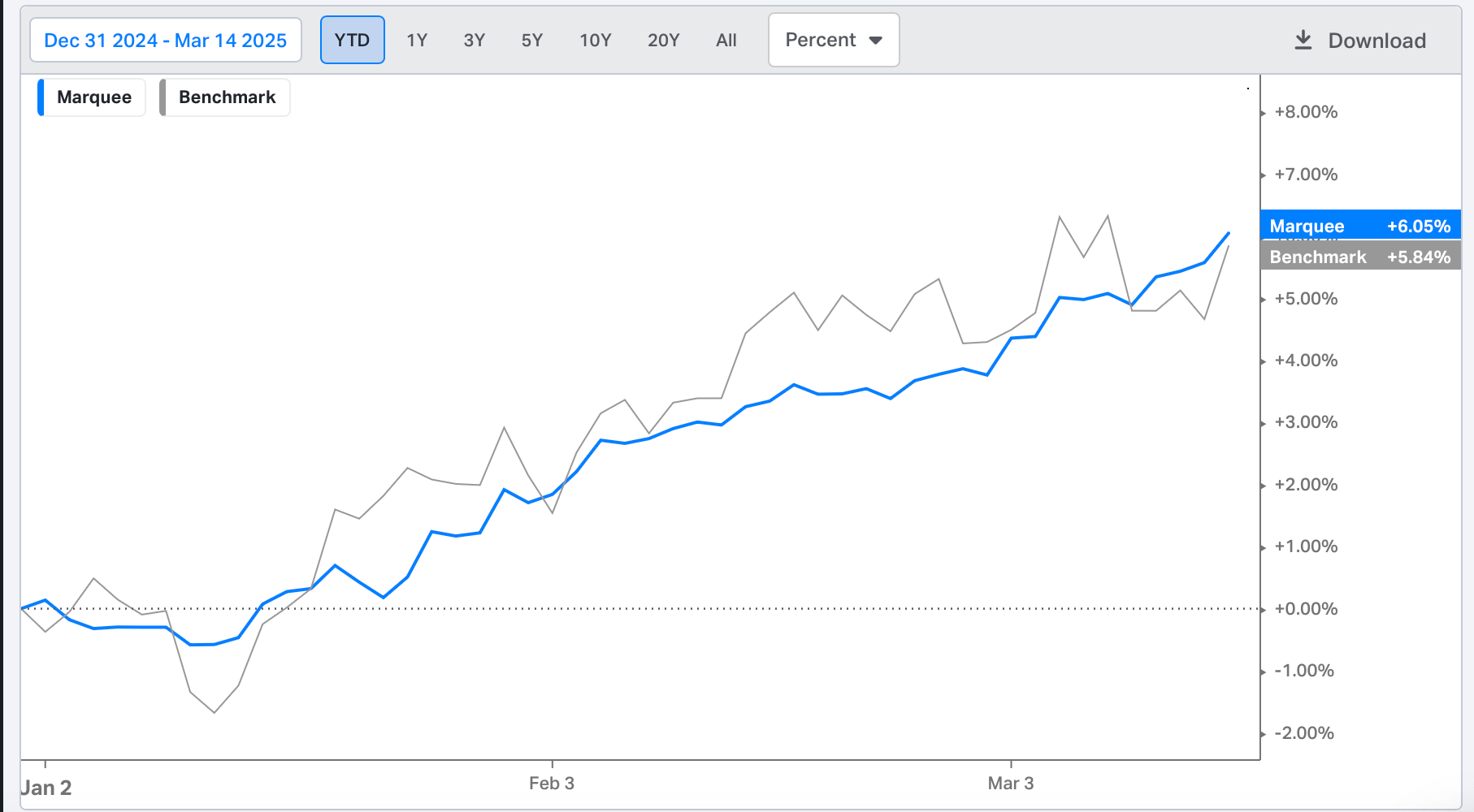 We have been preparing for this scenario in the portfolio, and as a result, we have outperformed our benchmark with a YTD performance of more than 6%.