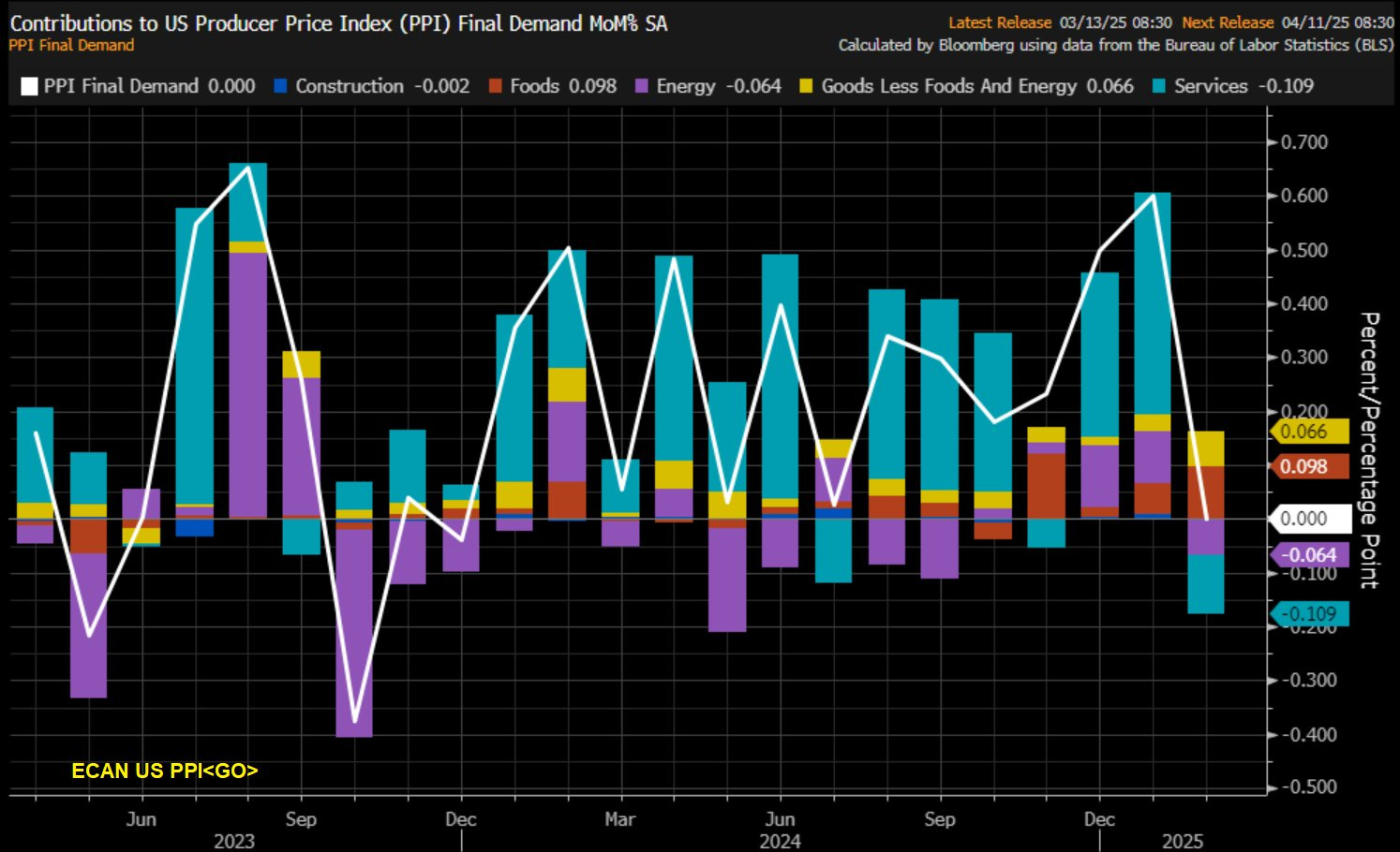 We begin today with Producer Price Inflation (PPI), which was softer than expected. Core PPI came in at -0.1 % MoM, compared to an estimate of a 0.3% rise.