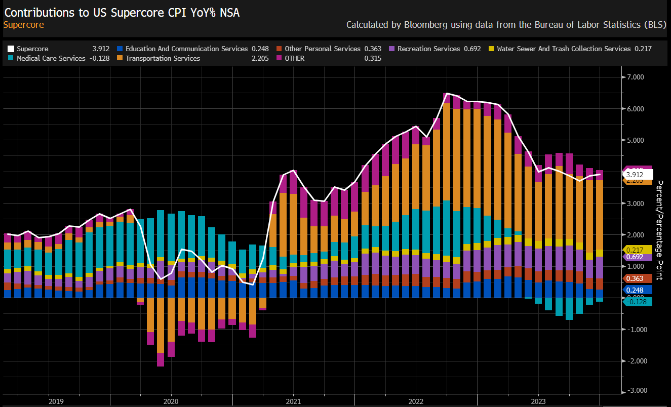 Digging further, Fed’s preferred Supercore CPI inched higher after stabilising at 4% mark.