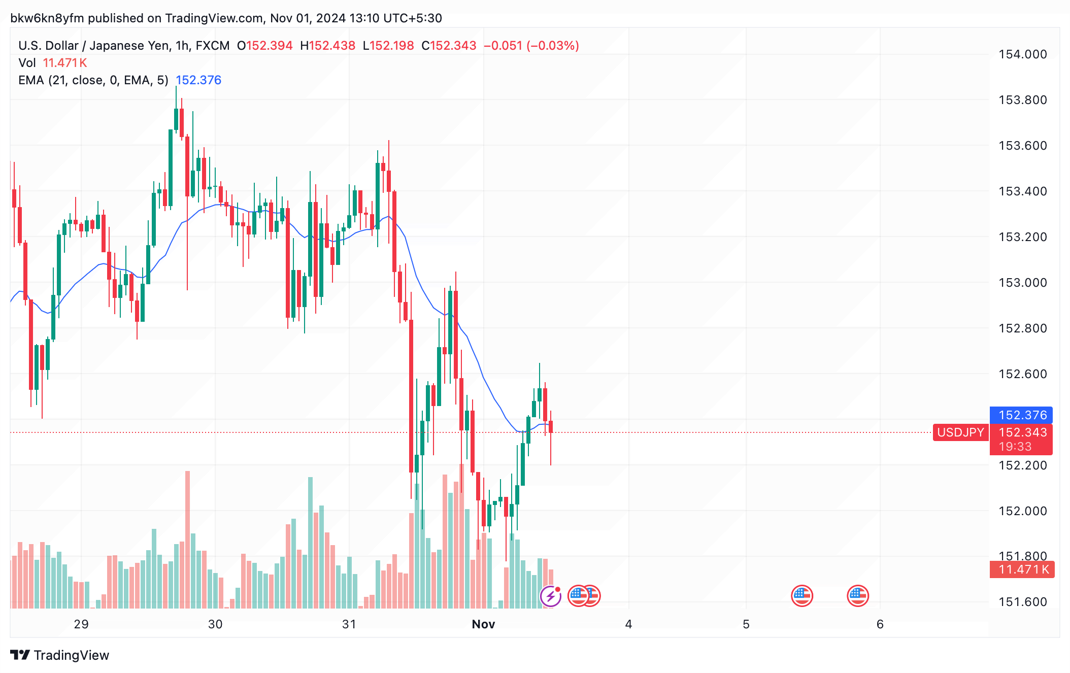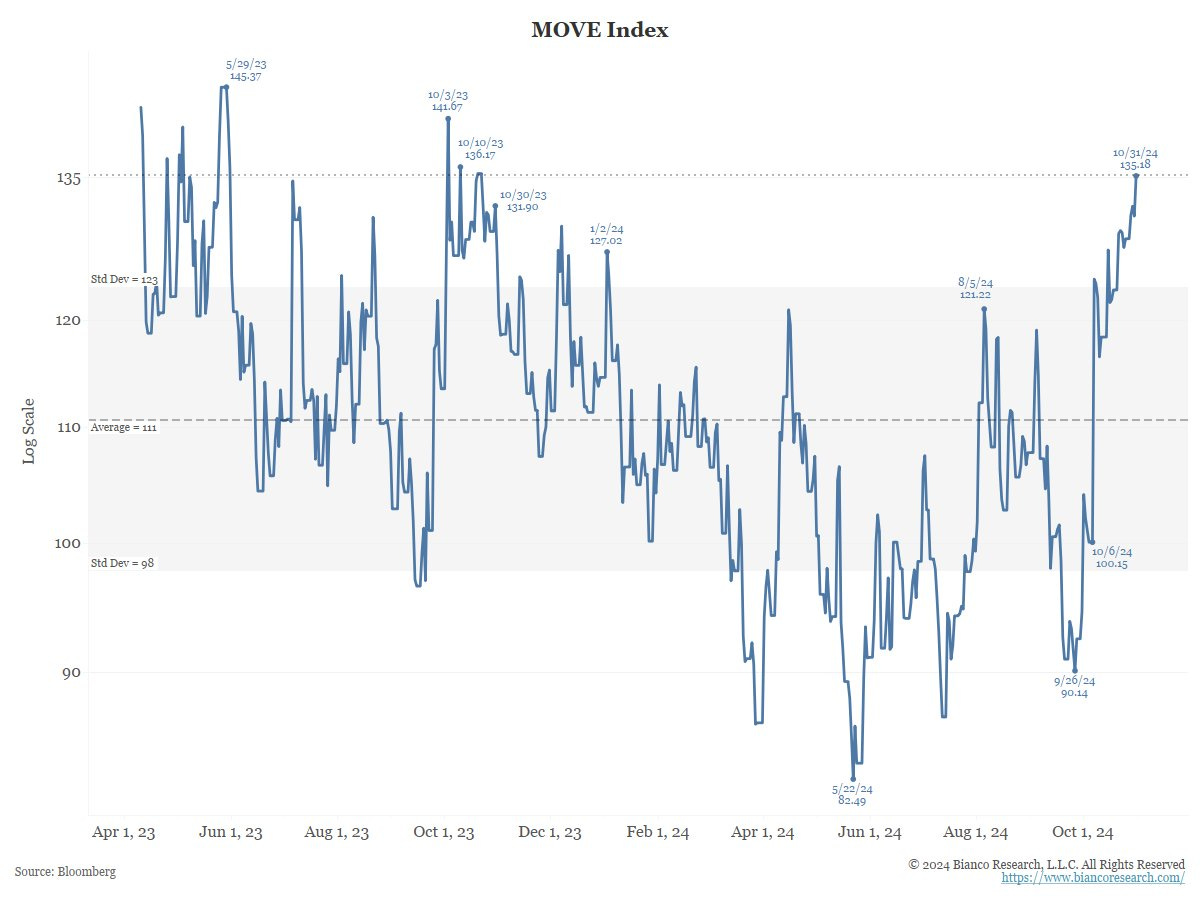 MOVE Index: The bond market volatility has surged to fresh 52-week highs as the market anticipated more than a 20 bps swing on the 10Y on the 5th/6th Nov post-election verdict.