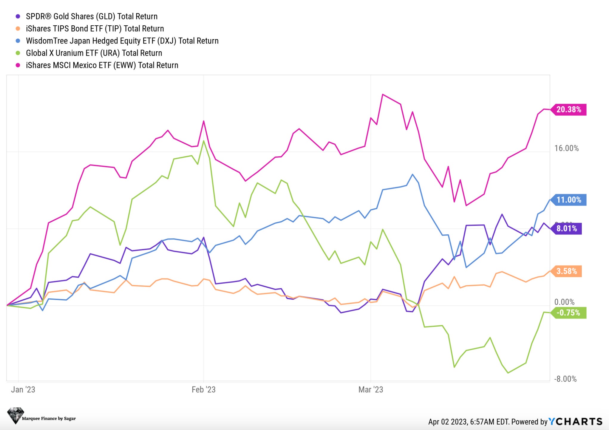 PineTree Macro’s top 5 holdings are Gold, TIPS Bond ETF, DXJ, Uranium ETF and EWW.