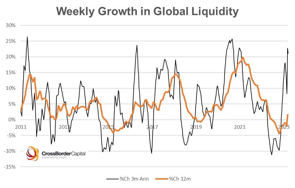 As per Cross Border Capital, global liquidity bottomed out in October last year.