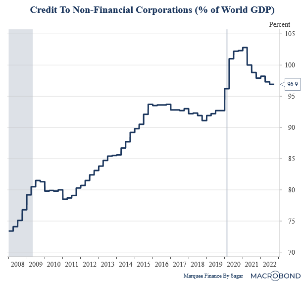 Since the GFC, the private sector has accumulated a lot of leverage (96% of the world GDP), and unsurprisingly, more than half of this debt is dollar-denominated (around $12 trillion).