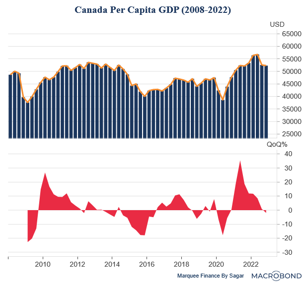 Canada has been facing a lot of headwinds with stagnant per capita income, a languishing private sector and an overleveraged housing market.