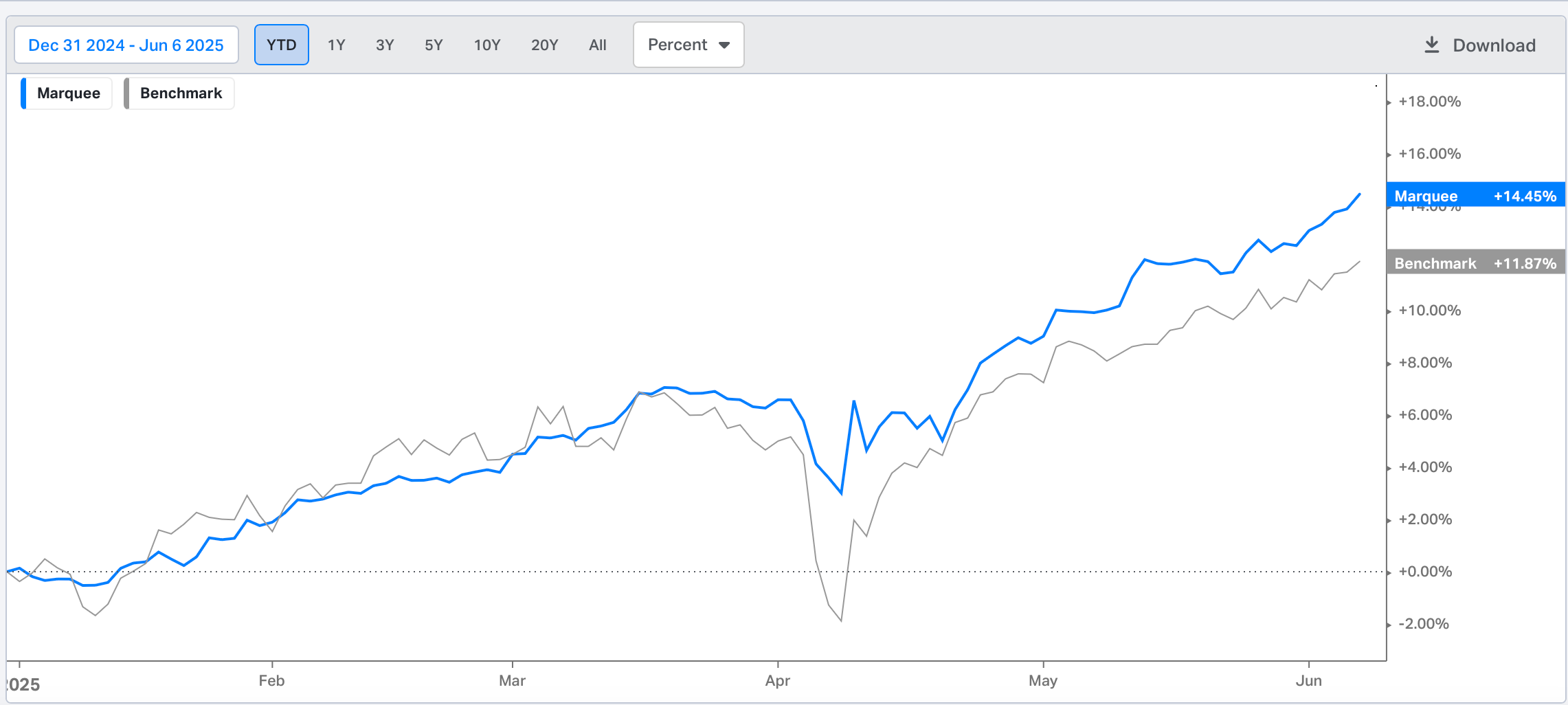 Regarding our performance, our timely bets on Silver and Oil have led to new all-time highs for the PF, and significant outperformance continues, with a return over 250 bps higher than our benchmark.