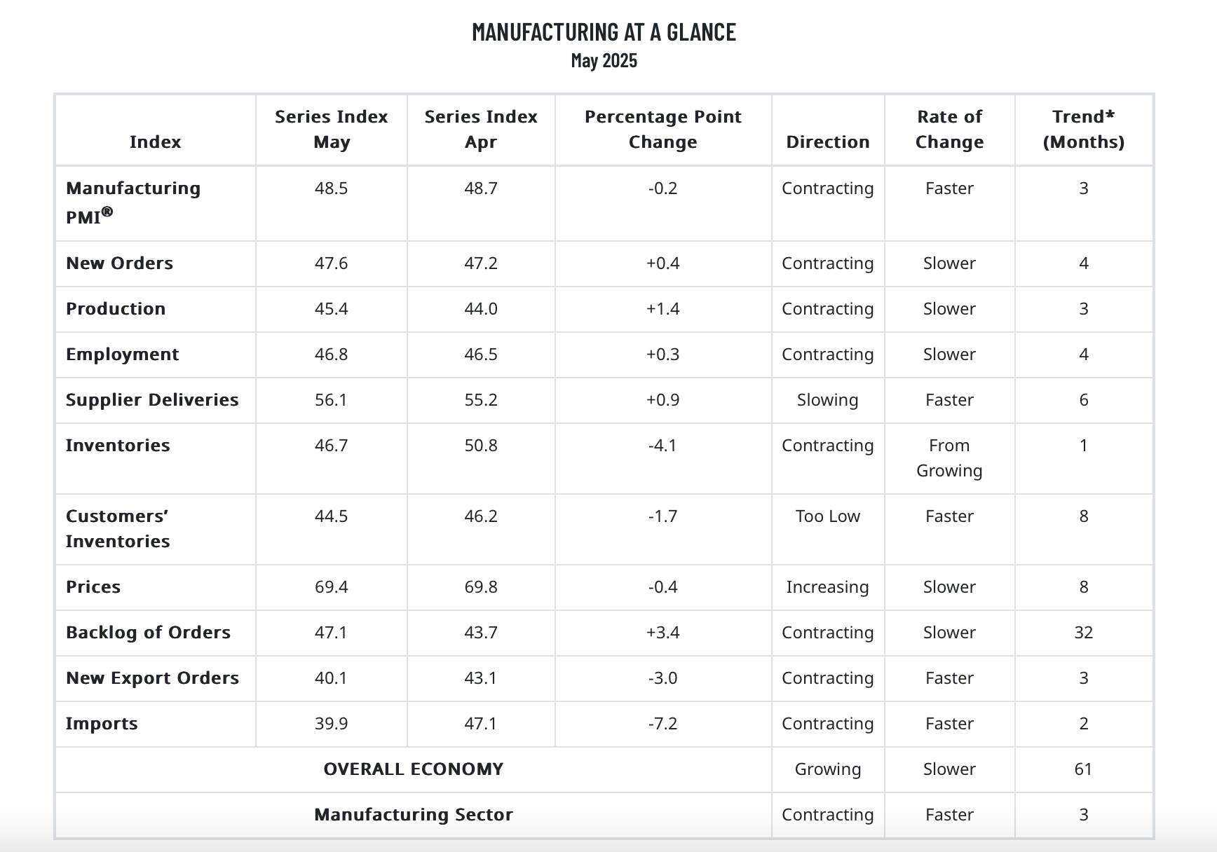 Nevertheless, if the trend of higher New Orders Less Inventories persists in June and July, we can expect higher ISM readings.