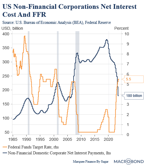 On the other hand, the private sector has successfully refinanced a majority of their borrowings for longer tenure at rock bottom rates post covid and hence has been able to reduce their net interest payments.