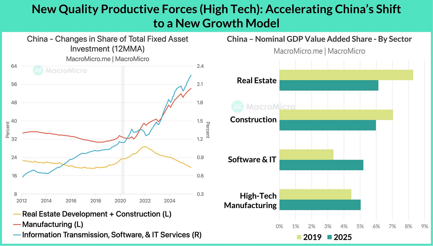 China's shift to high-tech manufacturing and Software services, with strides in AI and robotics, is visible in the macro data.