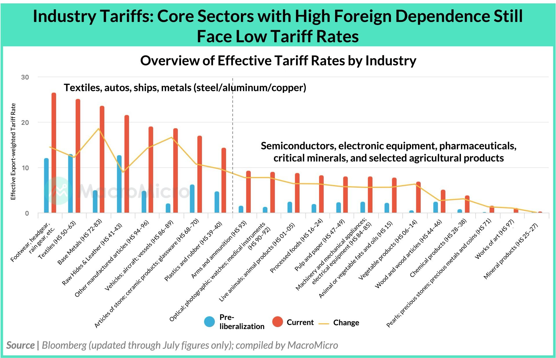 Furthermore, core sectors with high foreign dependence face low tariff rates.