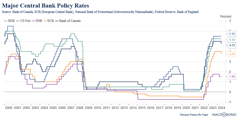 As expected, the ECB and Bank Of Canada (BOC) announced 25 bps cuts this week.