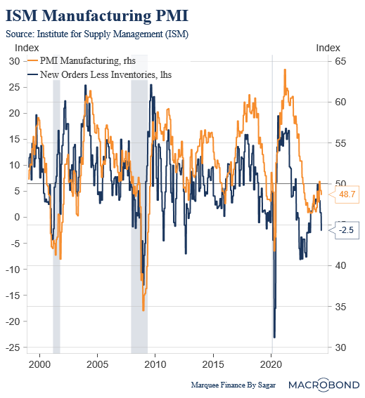 Nonetheless, New Orders less Inventories is one of the best indicators which predict the path of ISM Manufacturing.
