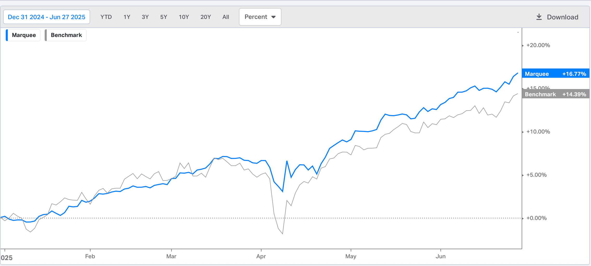 We are up by more than 16.5% YTD in comparison to the benchmark’s 14.39% return.