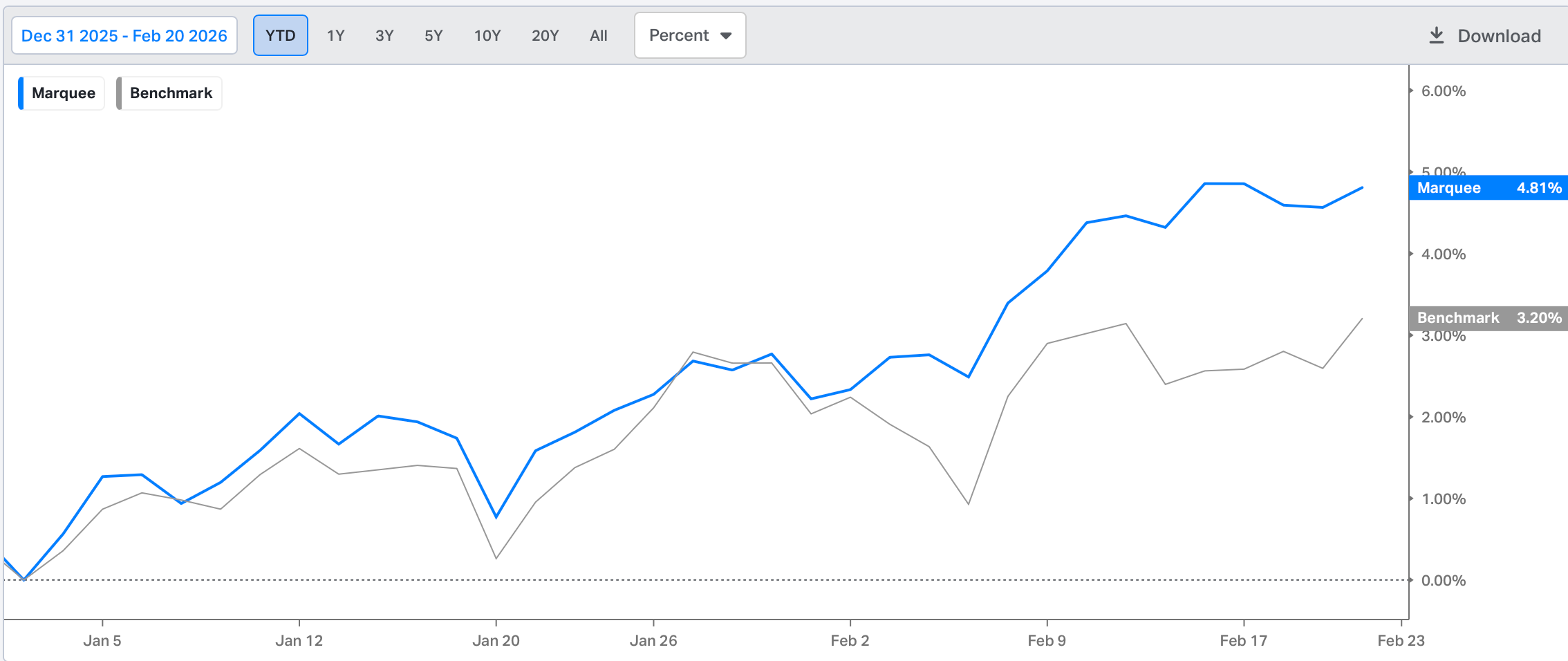 While the benchmark closed at YTD highs, we closed just shy of highs (5 bps lower) and are up 4.81% YTD.