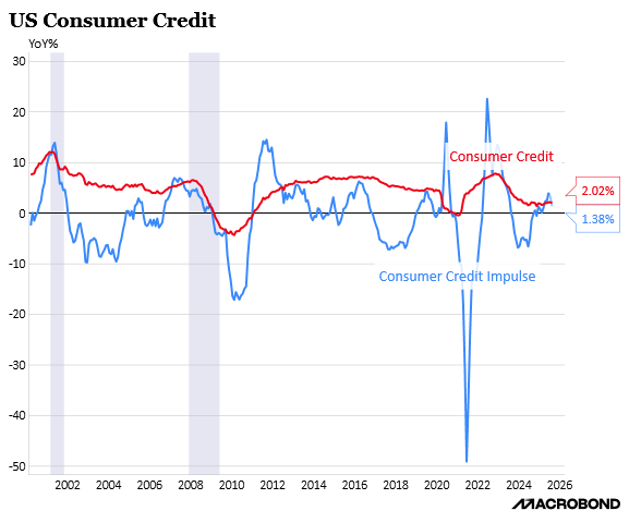 With credit card delinquencies rising and at a record high for low-income consumers, we don’t expect a material surge in consumer credit, which could ultimately lead to lower real retail sales & a drag on GDP.
