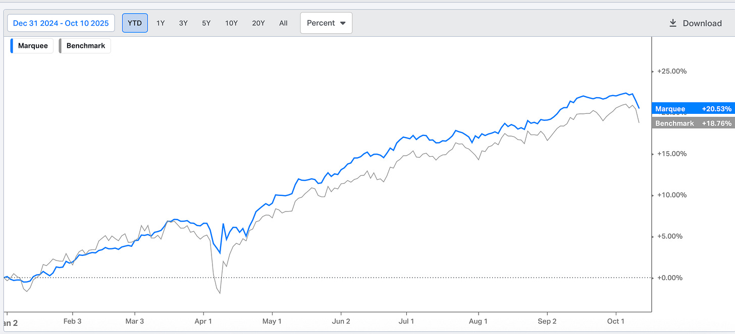 We are now up 20.53% YTD (officially in a drawdown) against the benchmark’s return of 18.76% YTD.