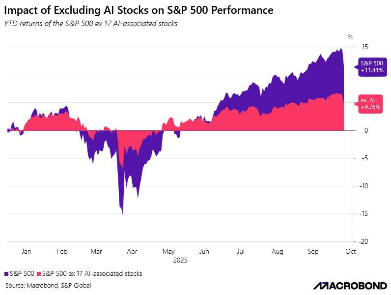 If we exclude the 17-AI names, the S&P 500 is up less than 5% YTD, indicating that without the AI names, earnings growth is poor.
