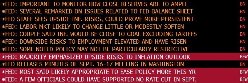 Thus, it will be intriguing to see what transpires during the FOMC, considering that there are no macro releases, and the shutdown might stretch into late October, given the stalemate in DC (note that some chatter about CPI release in the last week of October).