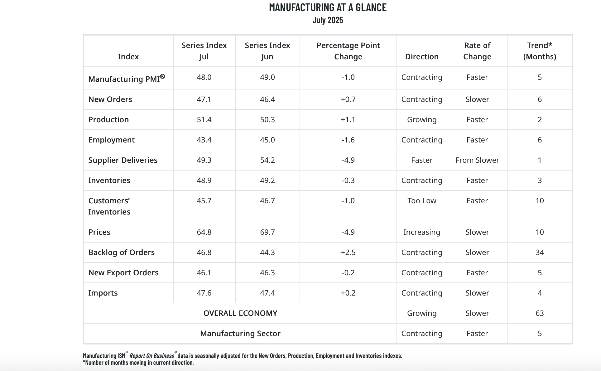 The ISM Manufacturing missed estimates and came in at 48 (a contraction).
