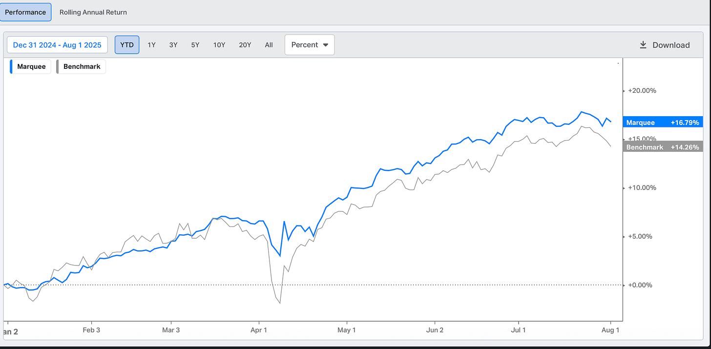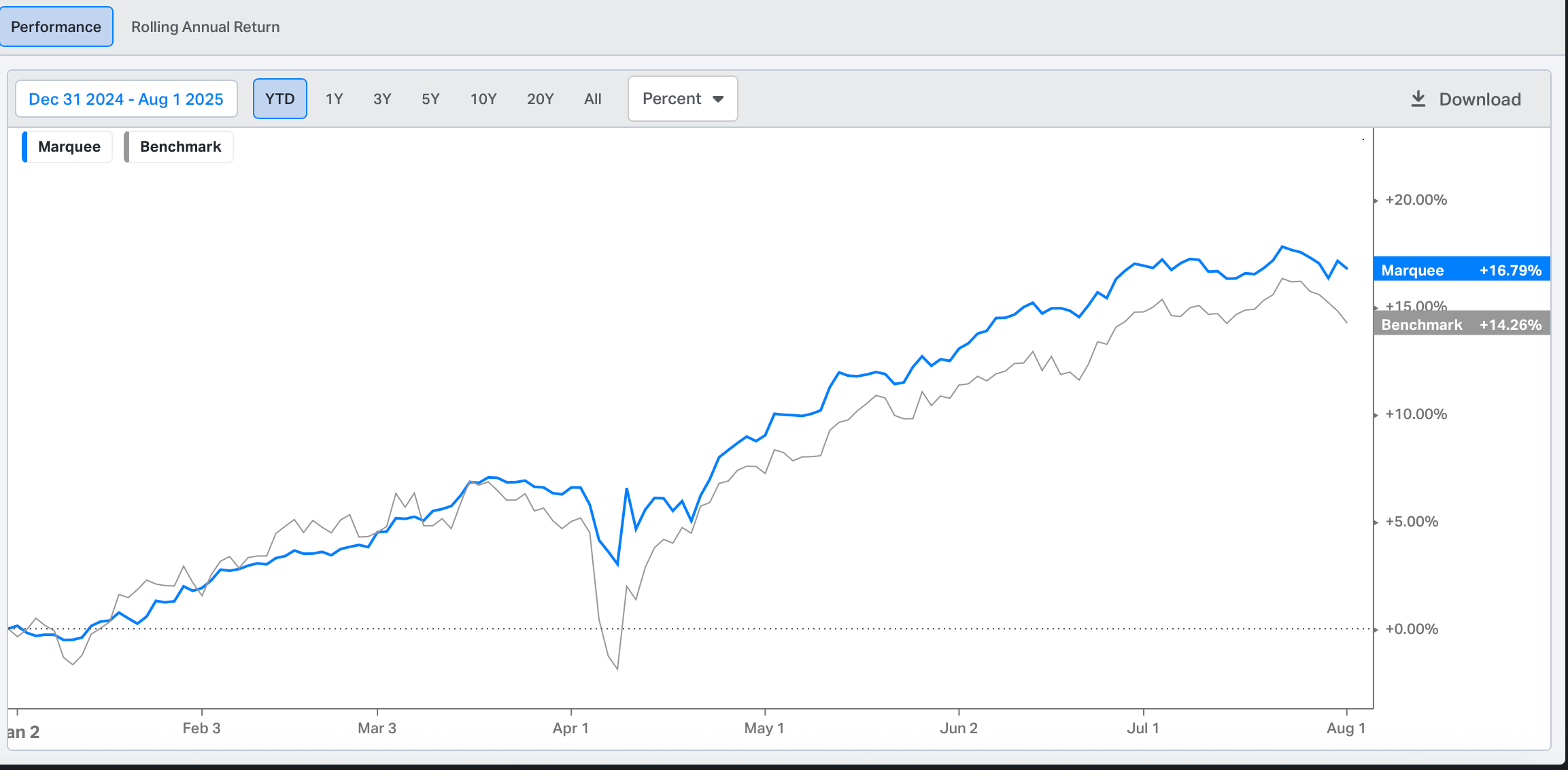 Due to the ongoing drawdown in the equity markets, we are now up 16.79% YTD, less than 64 bps off the highs, which we reached last week.