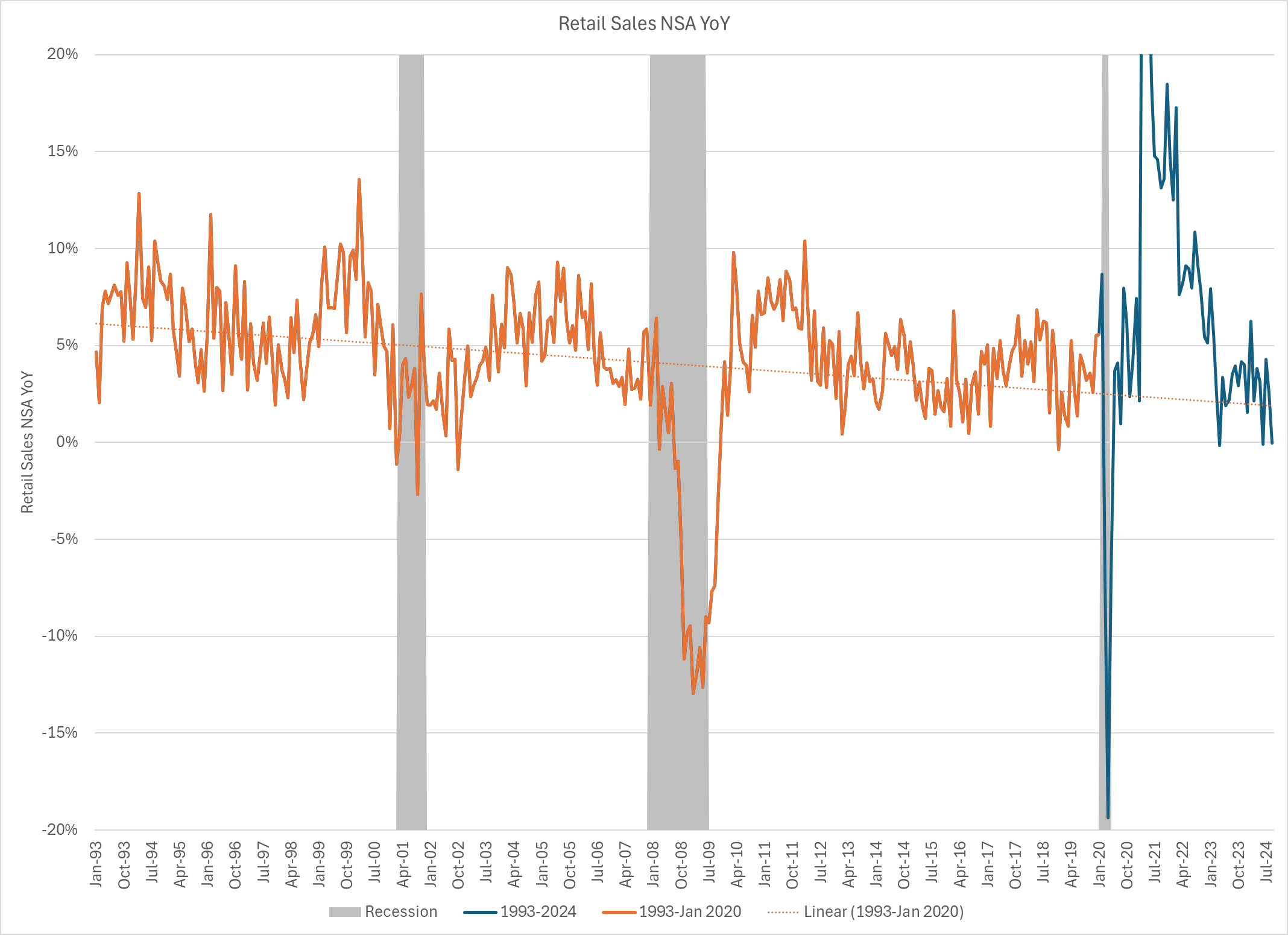 The trend here is alarming, as there is still no recovery in real retail sales, which are down 0.94% YoY.