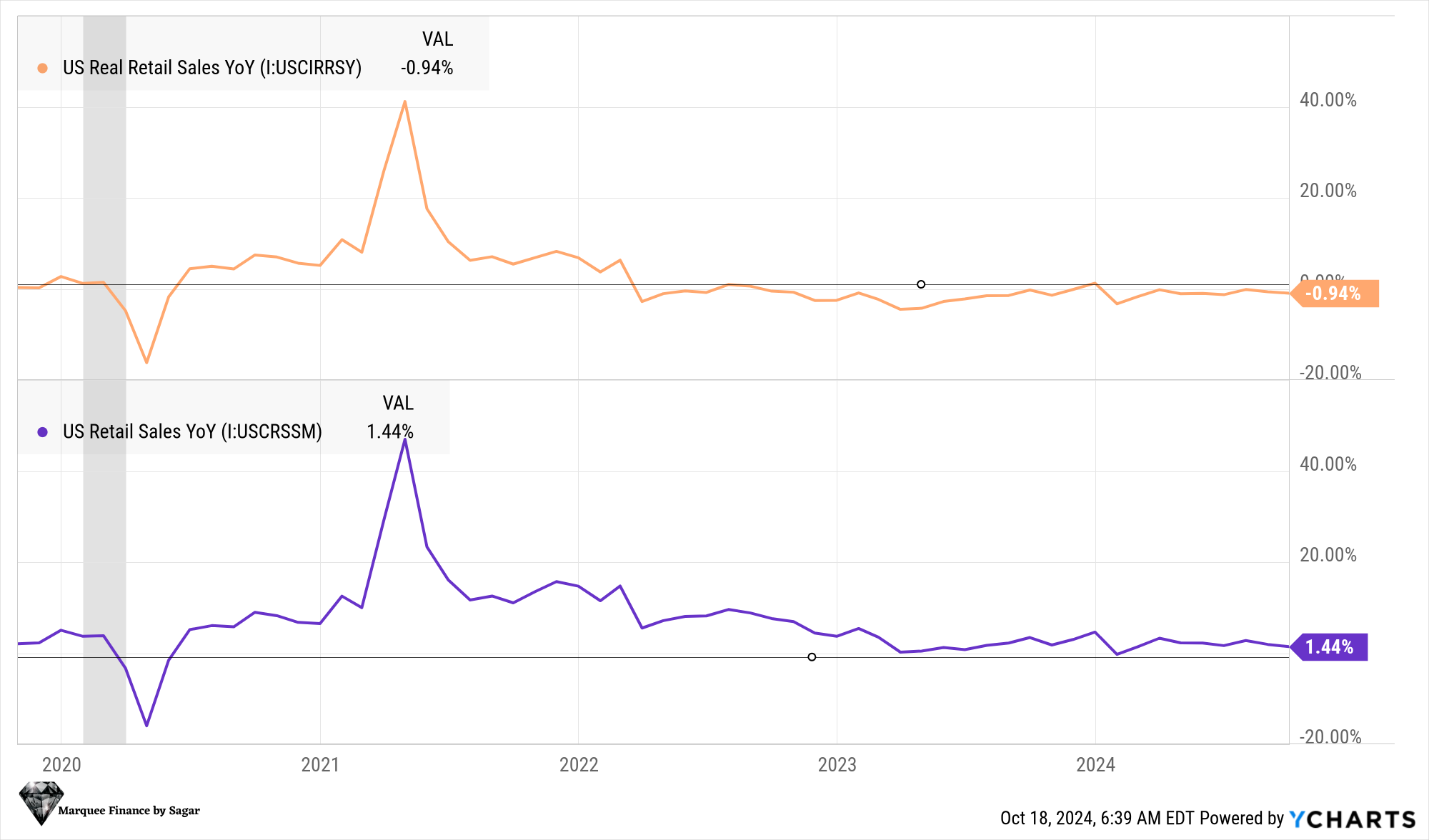 Furthermore, we always emphasize real retail sales or inflation-adjusted retail sales, enabling us to assess American consumers' health.