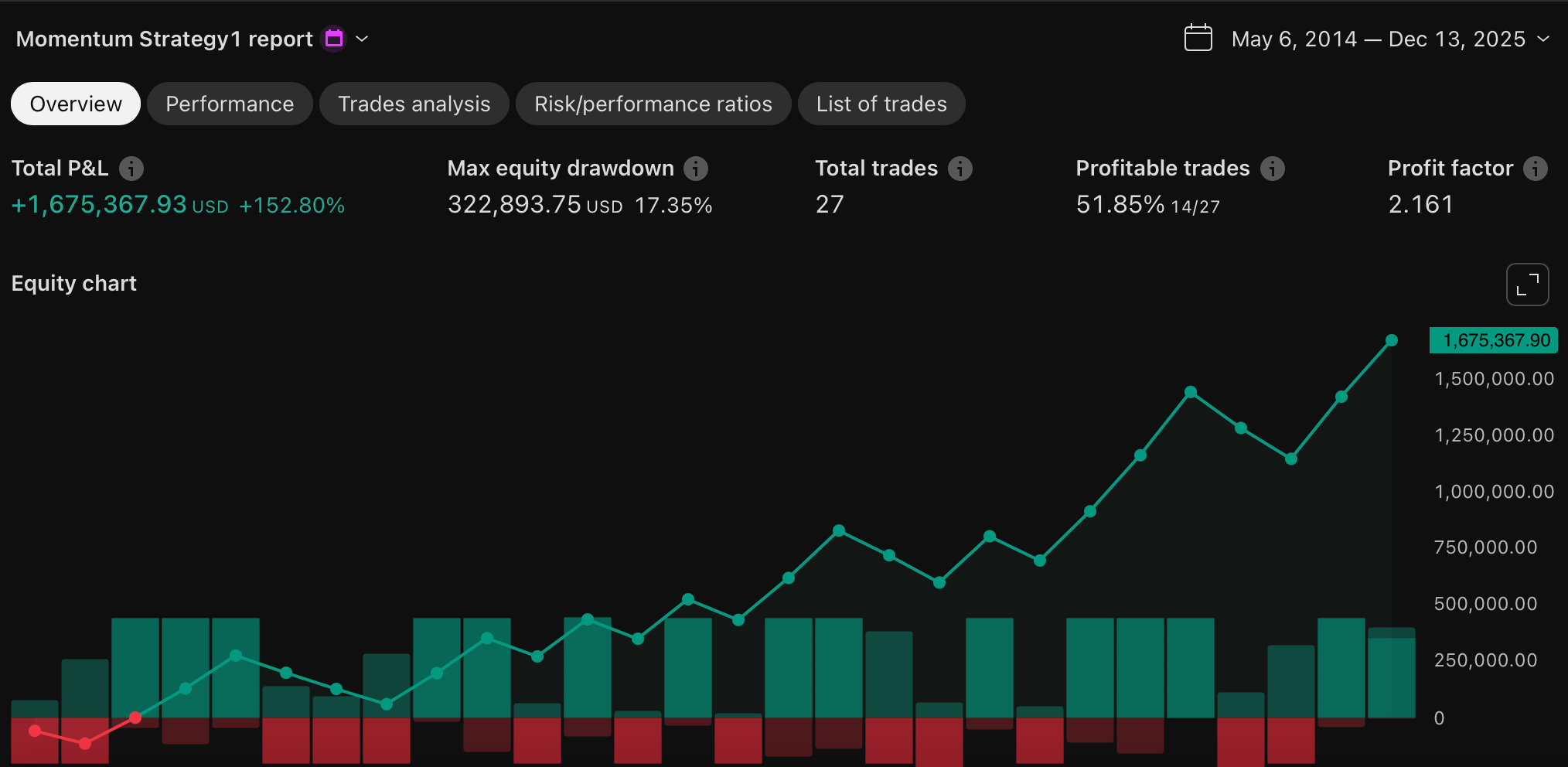 This is just an example of a long-only momentum strategy on the S&P 500 (still under development).