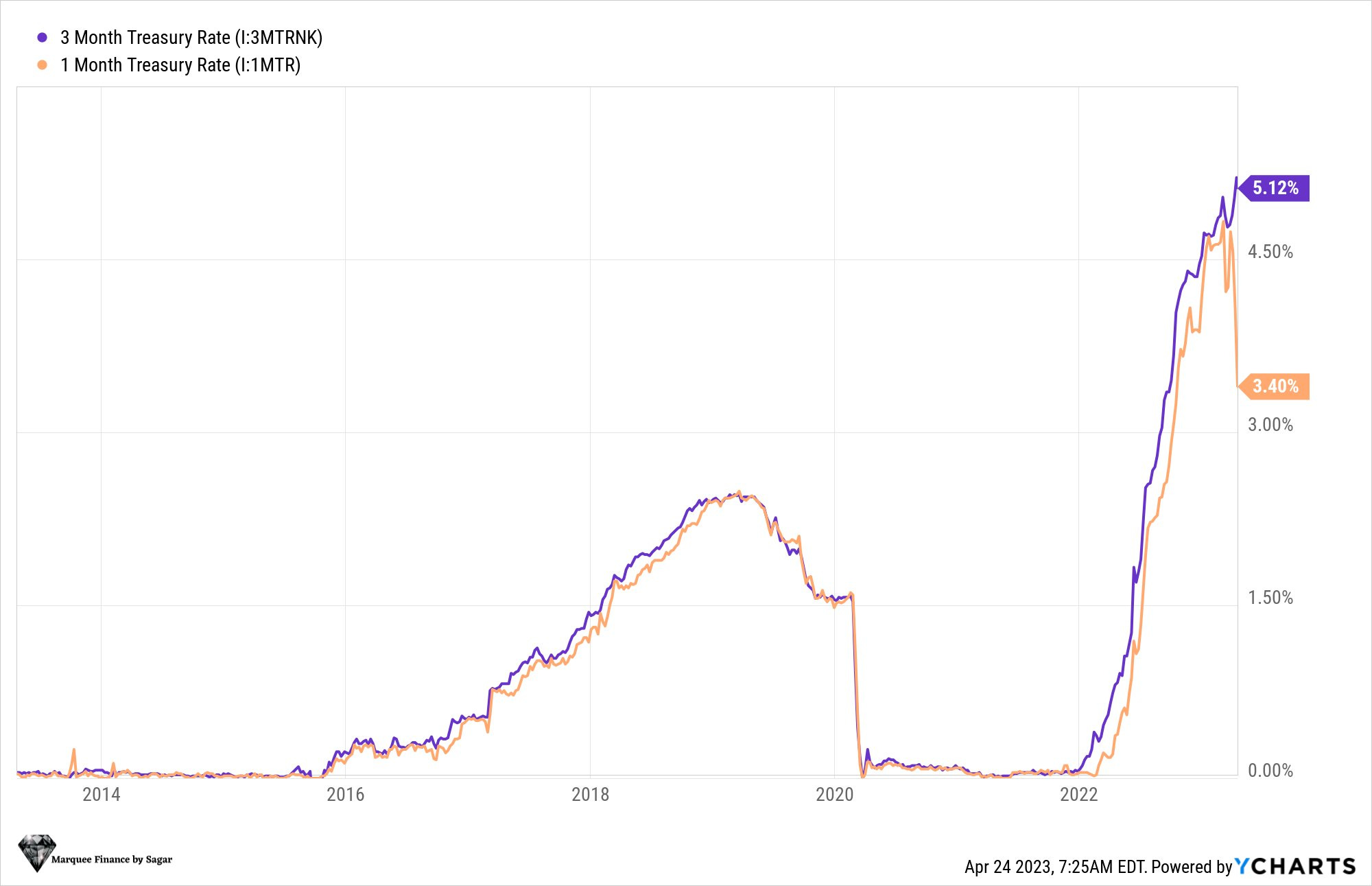 The bond markets got nervous on a likely debt ceiling hangover. As a result, the 1M T-bill and 3M T-bill decoupled, and the spread reached historic highs.