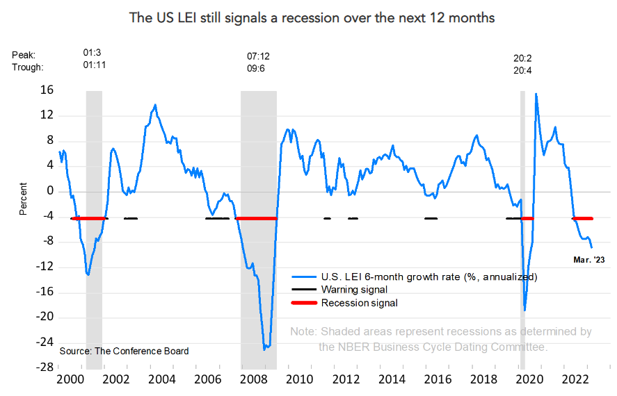 Bond markets are not alone, as the Conference Board Leading Indicator Index (LEI Index) is flashing red and predicting a recession in the next six months.