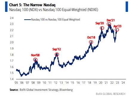 Regardless of the small banks’ fiasco, the equity markets, led by the Megatech names, rallied. The breadth has been really poor lately, and as a result, NDX has massively outperformed NDXE.
