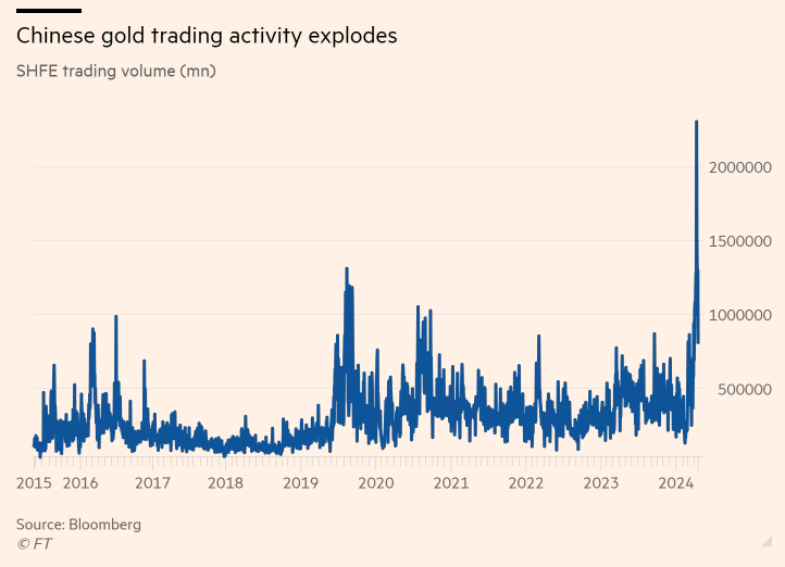 While the property sector has been in meltdown for the last few years, and the Chinese equity markets remain in a bear market, the love for bullion in the mainland has led to constant buying by households.
