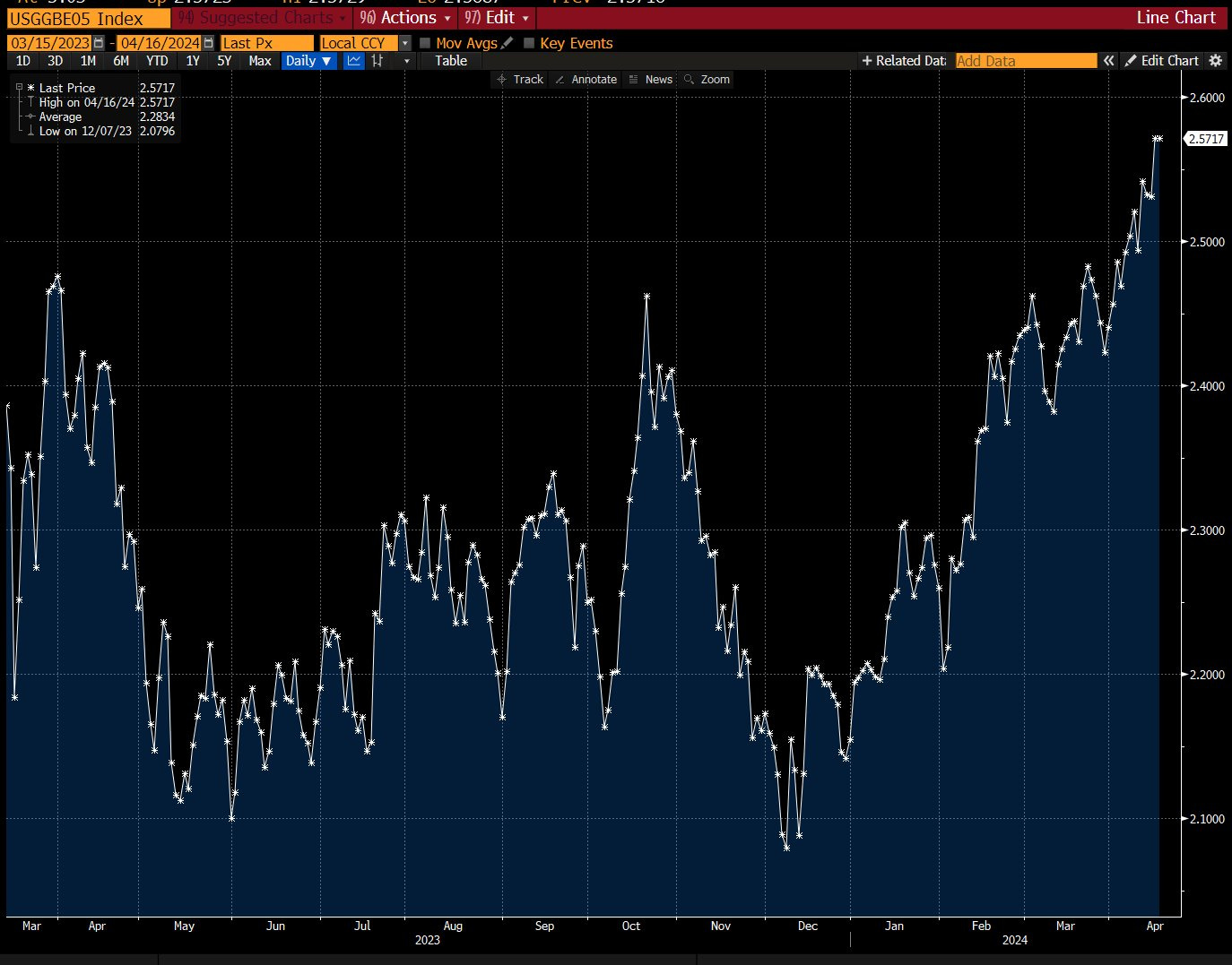 Since the Fed's premature pivot in December and the recovery in the Chinese economy, which led to an enormous rally in commodities, inflation expectations have risen significantly.