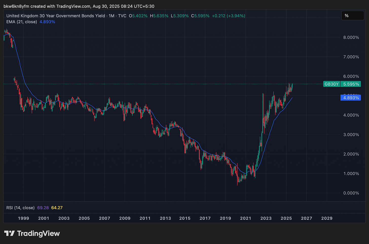 The UK 30-year bond yields jumped to the highest levels since 1998 and are now higher than 100 bps from the famous Liz Truss episode when Sterling touched parity.