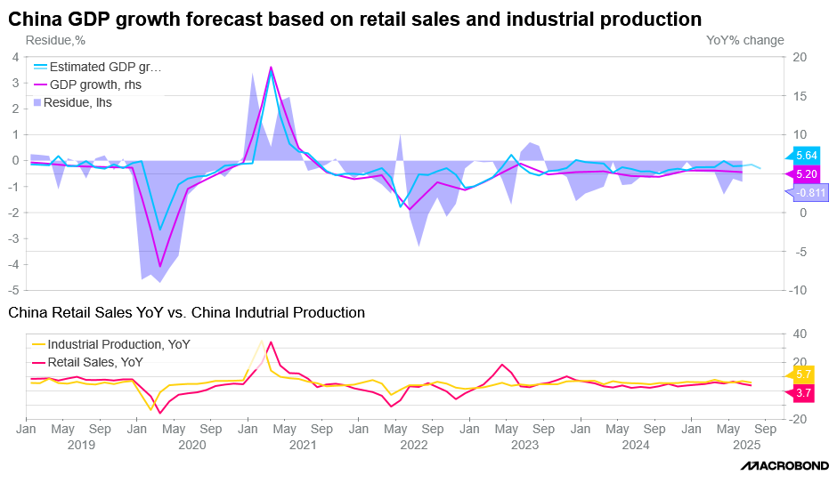 Due to tepid retail sales and industrial production data, we expect slower GDP growth.