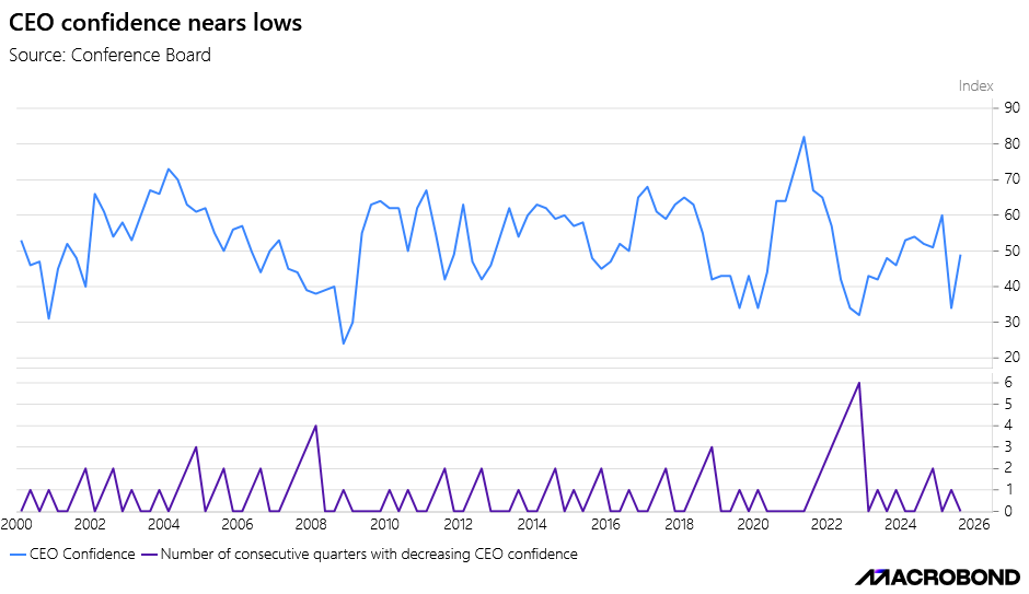 We are now witnessing a rebound in the CEO Confidence after the tariff saga led to a sharp fall. Thus, no alarming signal here.