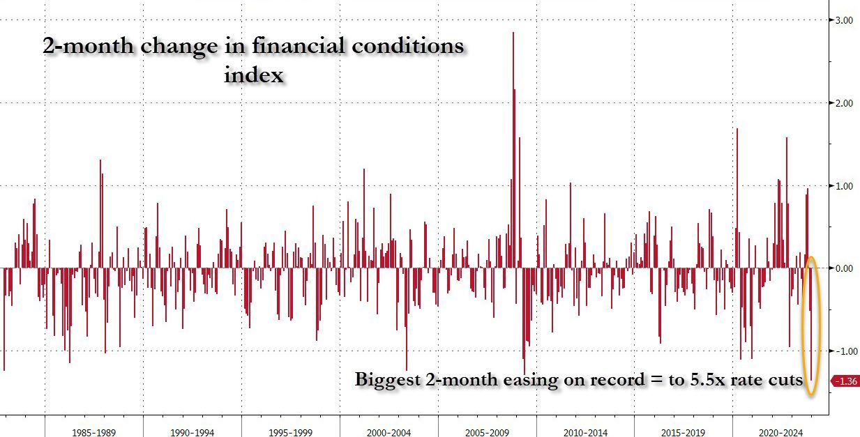 November and December witnessed the biggest 2-month change in financial conditions (often seen during the QE period post-COVID and GFC).