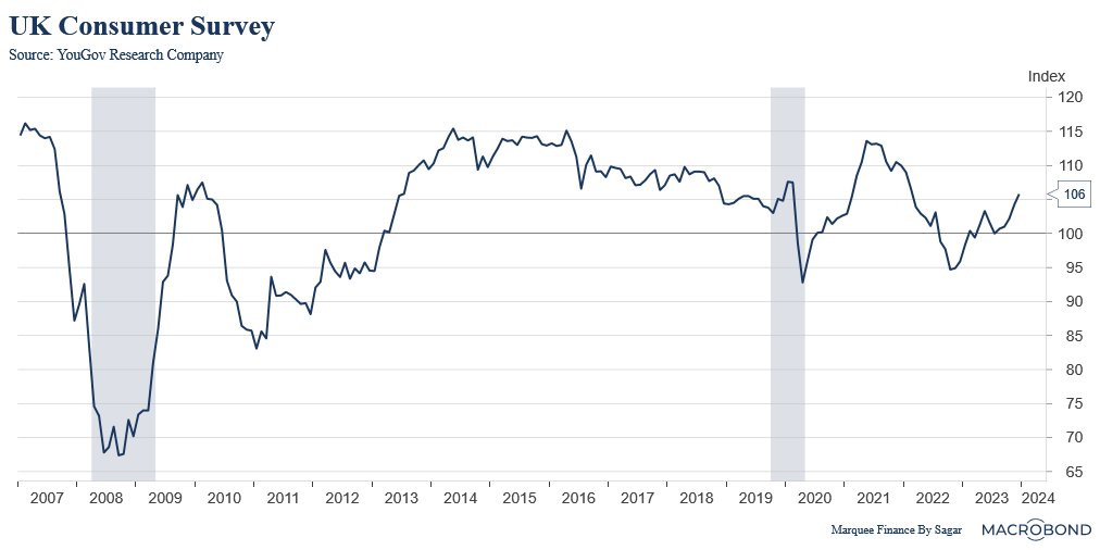 On the other hand, the UK is witnessing a swift recovery thanks to higher real wages compared to its counterparts, which has been driving consumer sentiment up and leading to buoyant services activity.