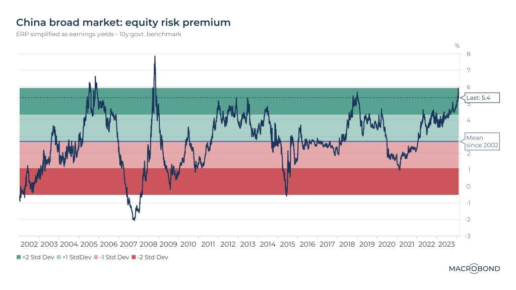 Nevertheless, if history is a precedent, the Chinese market is ready for a stealth rally as the equity risk premium has “nearly” become the most favourable ever.