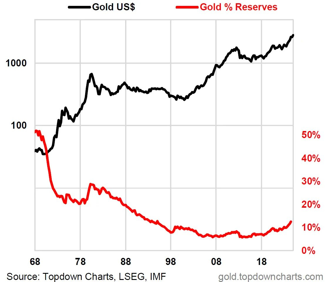 In fact, global reserve allocations to gold have doubled over the past 10 years, with Russia, China and India being the top buyers of the shiny yellow metal.