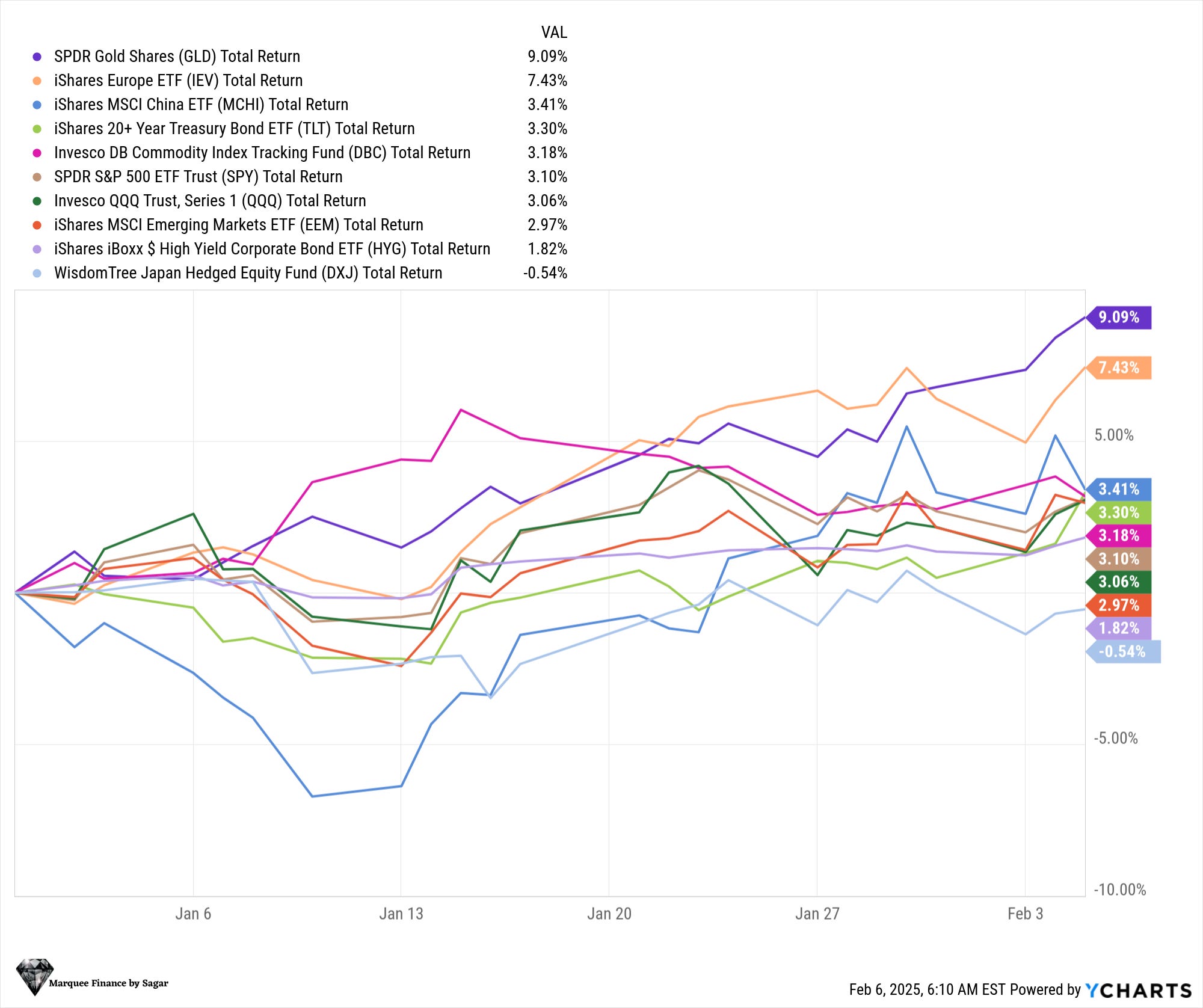 While everyone piled onto Mag 7 post-Trump win in November, January was one of those months when the market bid up the under-owned and most hated stocks. You will be surprised to know that up to 5th February, Europe and China outperformed the US indices by massive margins.