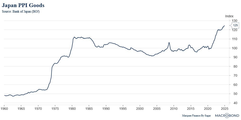 The last time the PPI Goods Index rose 25% was from 2003 to 2008 when oil prices spiked to $150 (and other commodities also rallied).