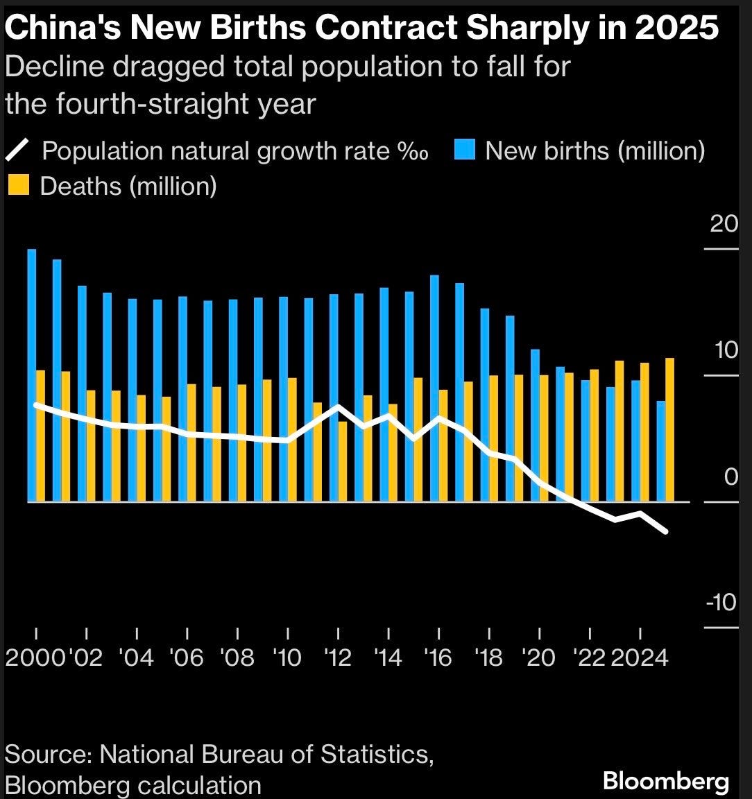 BONUS CHART: While deterioration in demographics has been a significant concern in South Korea and Japan, it’s China which is undergoing a rapid population decline. Due to the infamous one-child policy, deaths have exceeded new births for the last 4 consecutive years. As a result, China’s population has plunged, leading to unforeseen consequences for the government, people and corporations.