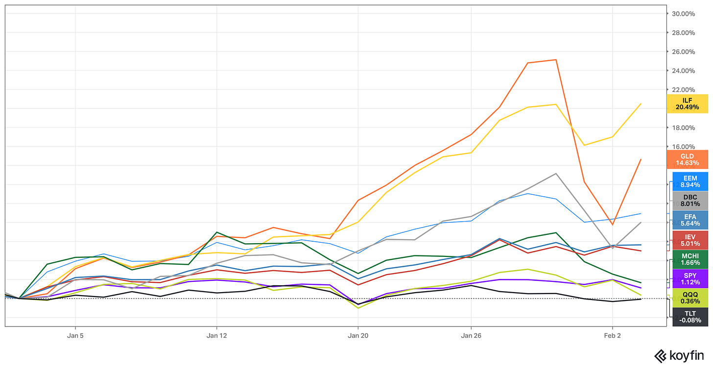 In continuation of the 2025 trend, Gold, along with LATAM equities, has been ripping since the beginning of the year.