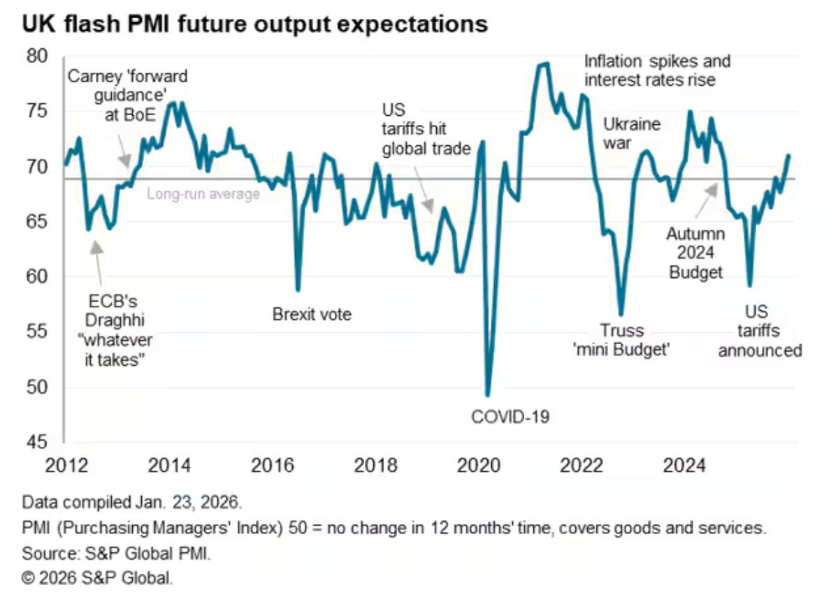 However, there is a ray of hope, as the UK PMI future output expectations have surged to a multi-year high, suggesting a recovery might be on the horizon.