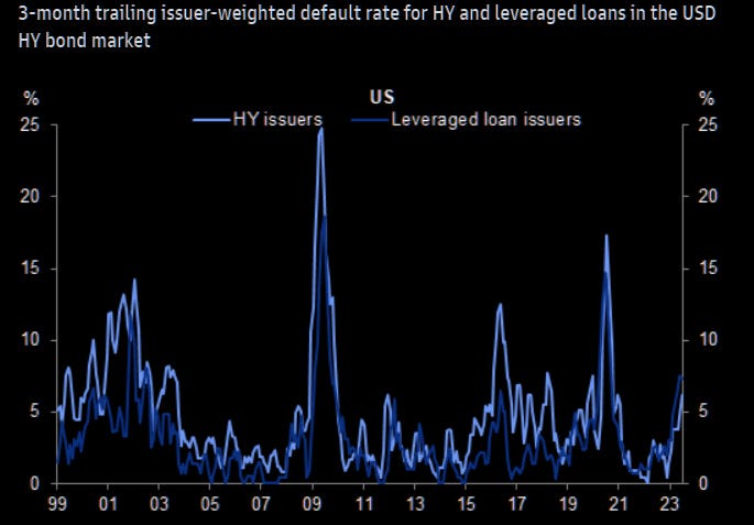While the sovereign bond markets remain rangebound, HY and IG spreads remain tightest since the covid flare up. However, some of the weakest companies feel the heat of higher rates as defaults have started to jump.